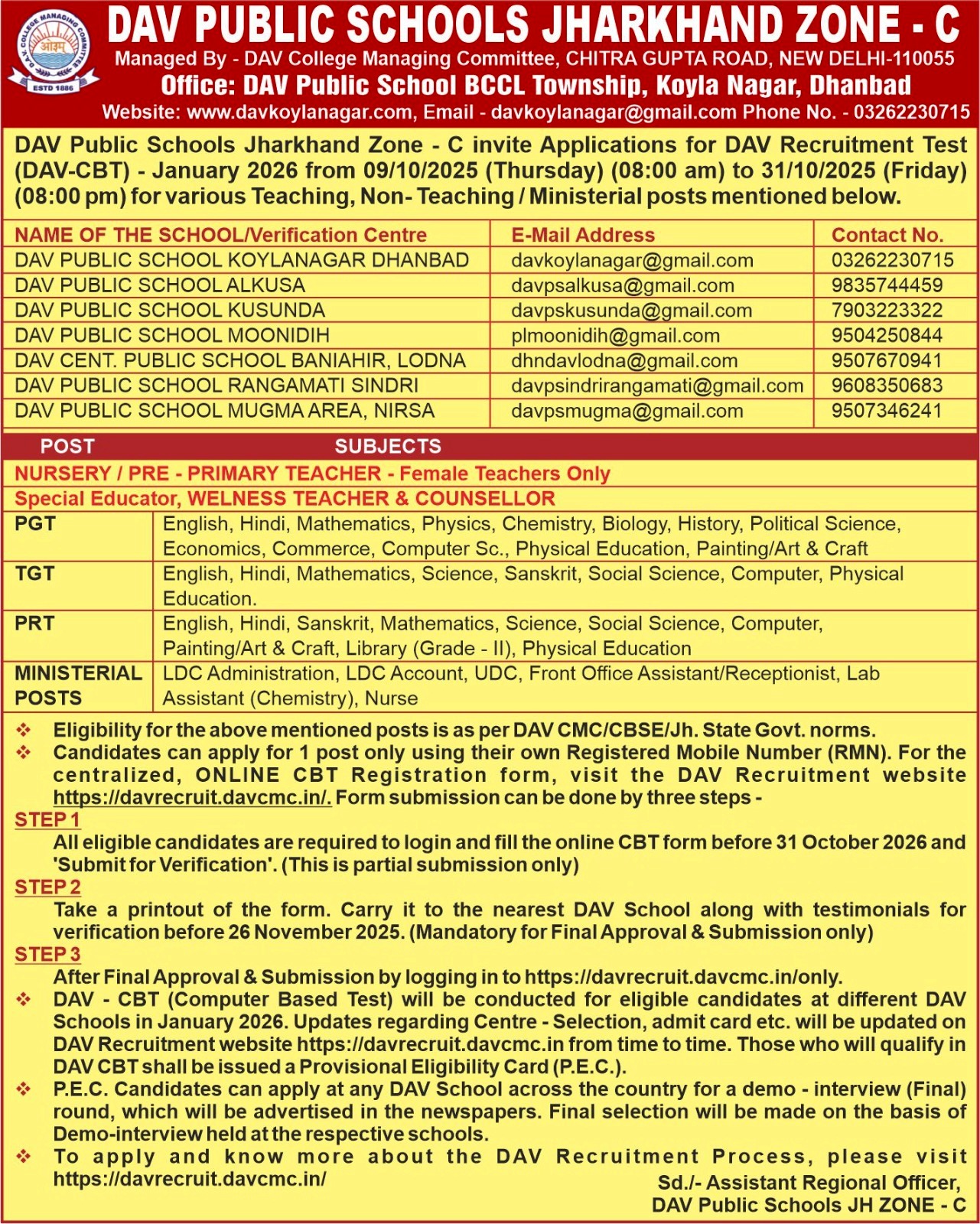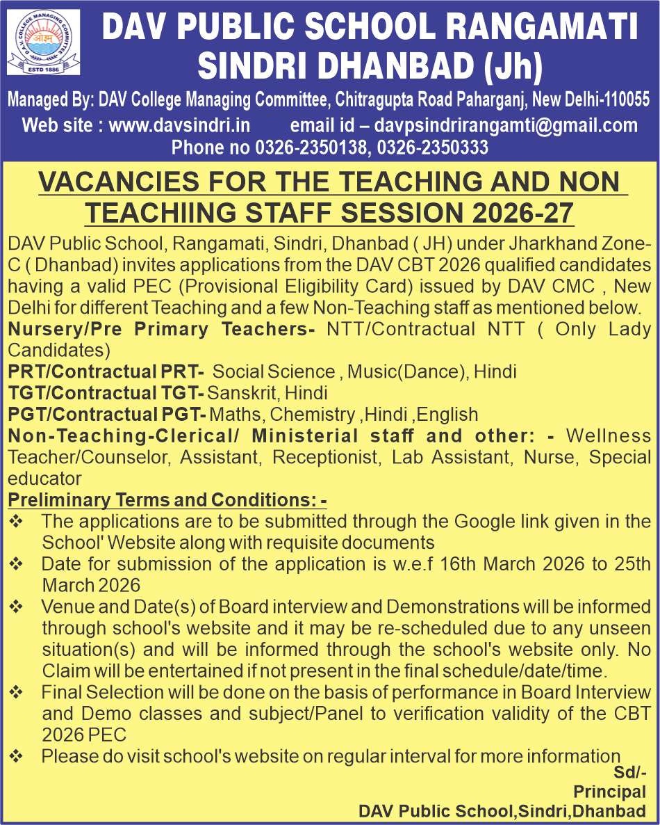 JHARKHAND-828122 E-Mail ID: davpsindrirangamati@gmail.com Phone No.: 0326-2350333 , 0326-2350138 (Office),